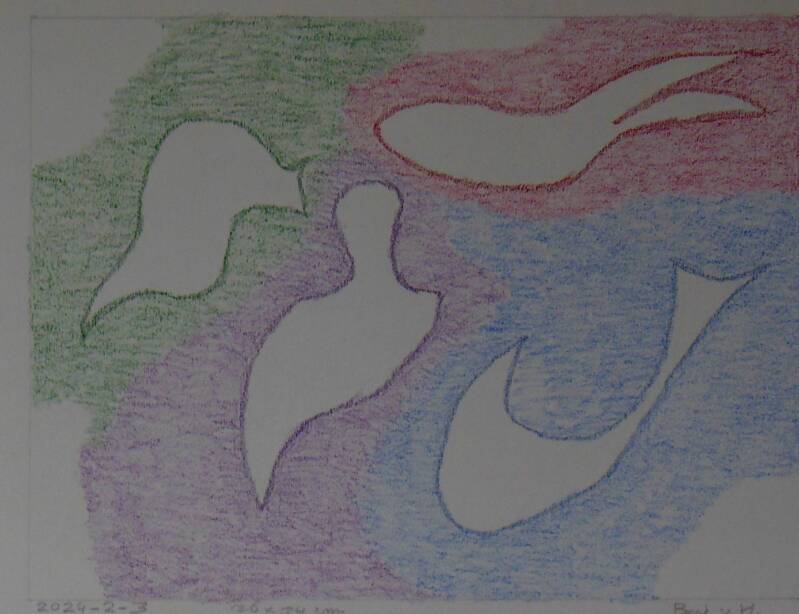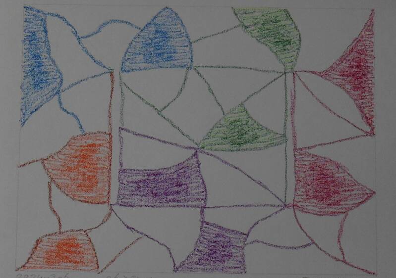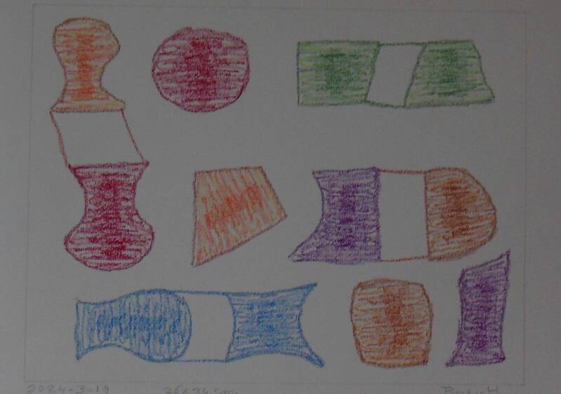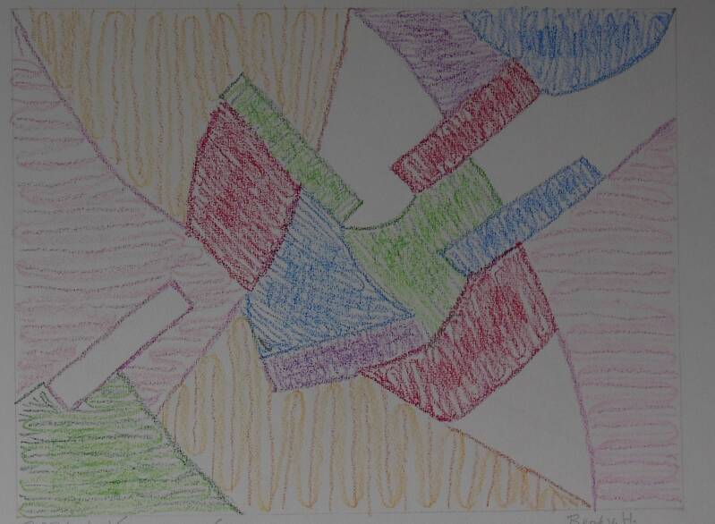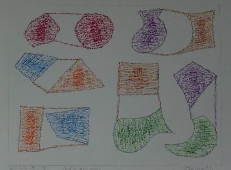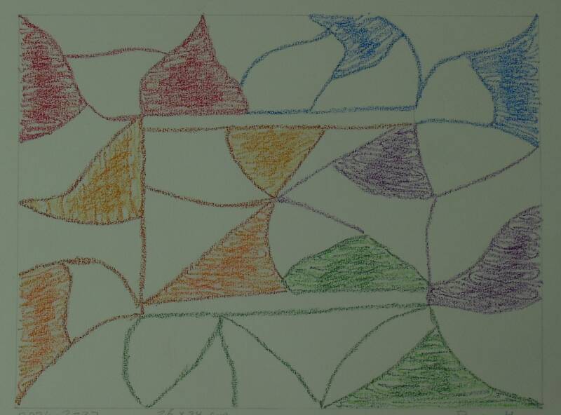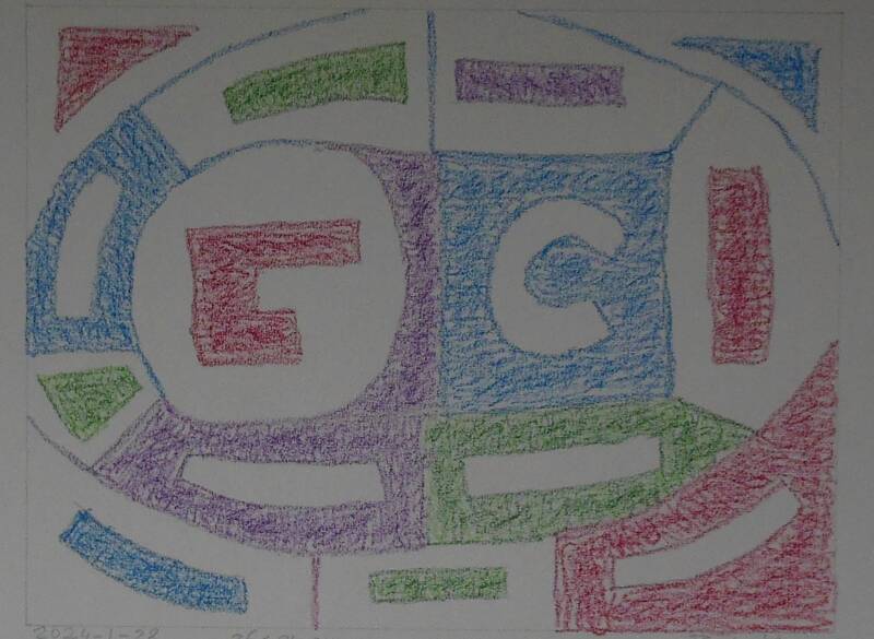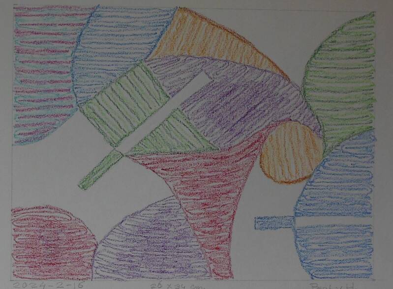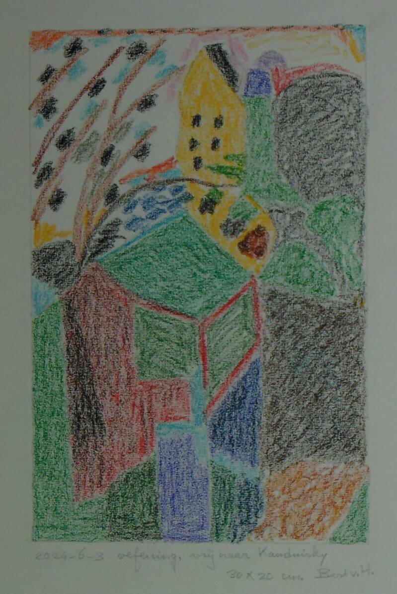 2024-6-2 oefening, vrij naar Kandinsky, 20 x 24 cm.