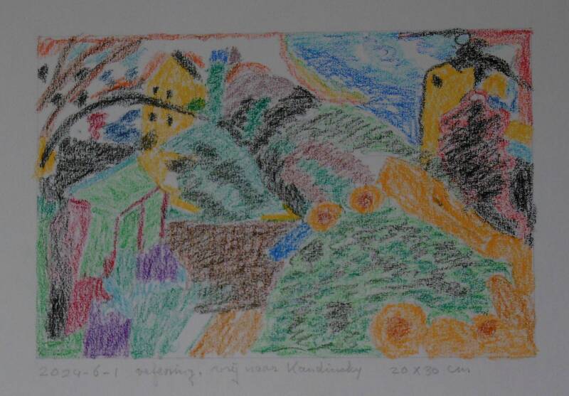 2024-5-24, oefening, vrij naar Kandinsky 20 x 28 cm.